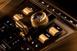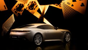 The most striking touches, however, are the 18k gold-plated accents. The drive mode rotary dial, roller controls, and gear selector all receive this Midas treatment, while gold threads are woven into the carbon trim inlays. True Bond fans will appreciate the “eight of hearts” embroidered on the driver’s sun visor – a subtle nod to a memorable scene.