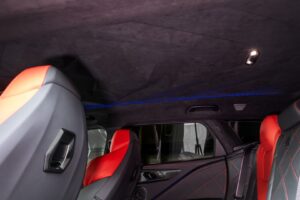 The MHXM 900’s already dramatic looks are amplified by a comprehensive carbon fibre body kit. The front receives a new spoiler lip, air ducts, and add-ons for the apron, along with a radiator grille frame and a new hood. Side skirts enhance the profile, while a roof spoiler, rear window spoiler, diffuser, trunk lid add-on, and side slats on the rear apron complete the aggressive makeover. To tie it all together, they cloaked the MHXM 900 in a stunning matte grey wrap.