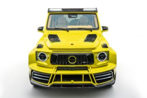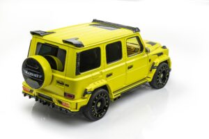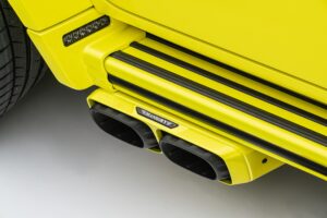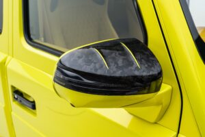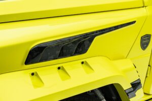 MANSORY hasn’t held back on the visual upgrades. The G63 receives a complete redesign of all carbon fibre body components. This includes new full-carbon hoods with integrated, redesigned air intakes, a fresh front fascia with updated lighting, a revised roof lamp arrangement, and wider wheel arches featuring the signature logo. The Gronos package adds a new spare wheel cover with an illuminated MANSORY logo, the ultimate finishing touch for off-road royalty.