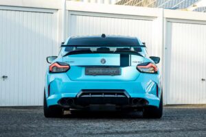 The Manhart MH2 500 II package combines a new power box, intake manifold, and intercooler to boost output from 369 bhp (275 kW) to 510 bhp (380 kW), exceeding even the M2. A stainless steel exhaust with valve technology is also included for a more aggressive sound.