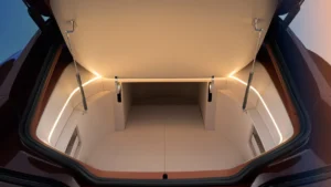 Things are noticeably different at the back. Instead of retaining the M8’s four-seat layout, BMW has opted for a more practical design, removing the rear seats entirely in favour of dual luggage compartments, split by a centre section also bearing the Speedtop name.