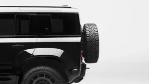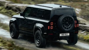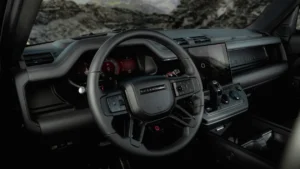 The dashboard cross beam gets a satin-black powder coat, and owners can add chopped carbon-fibre trim elements, which Land Rover describes as the “epitome of tough luxury.”
