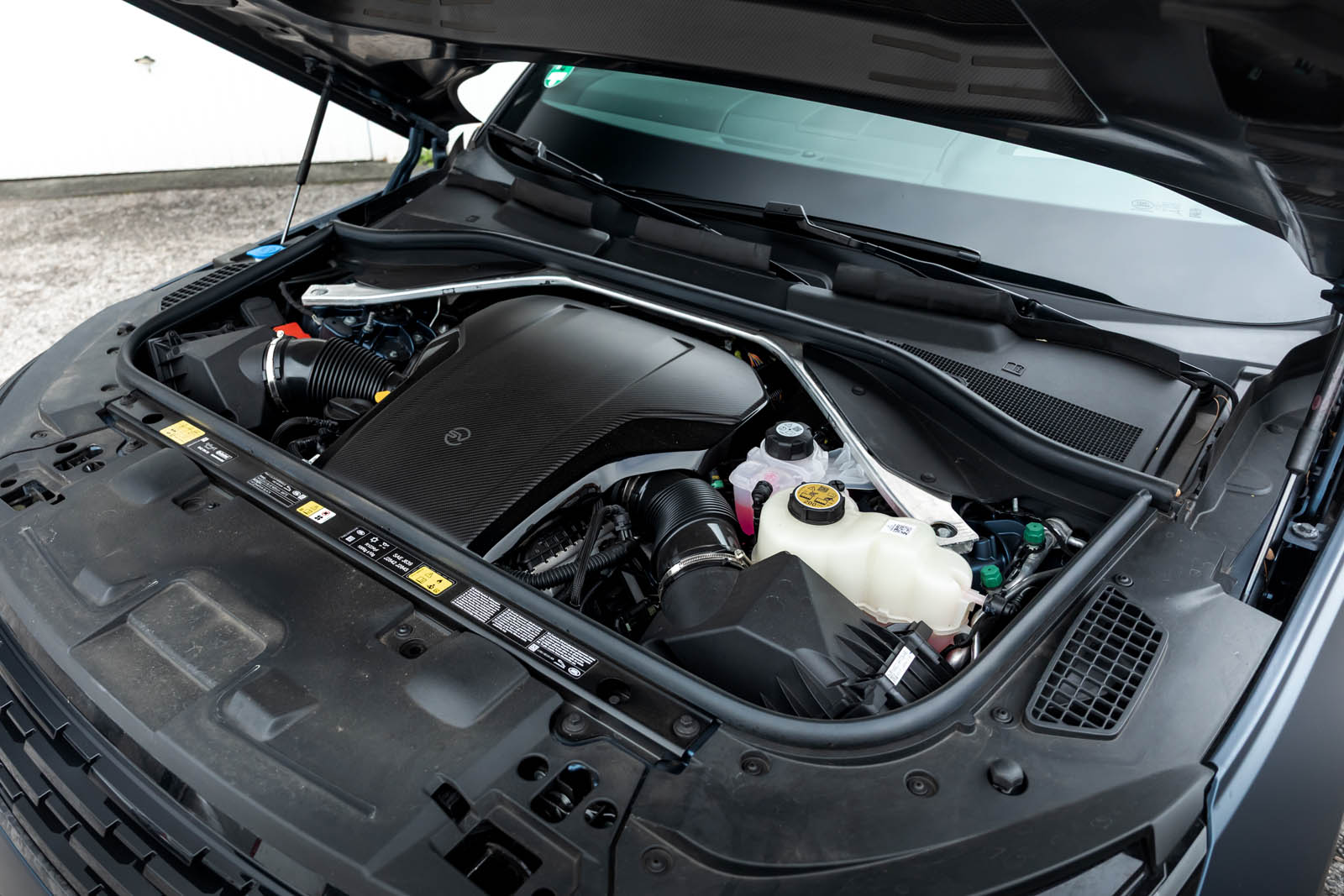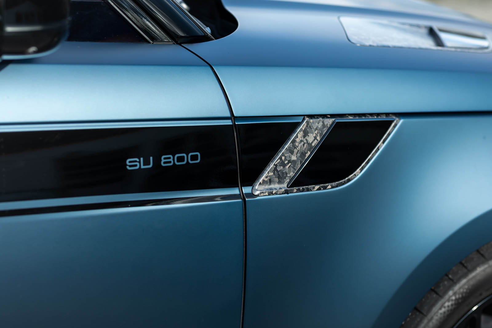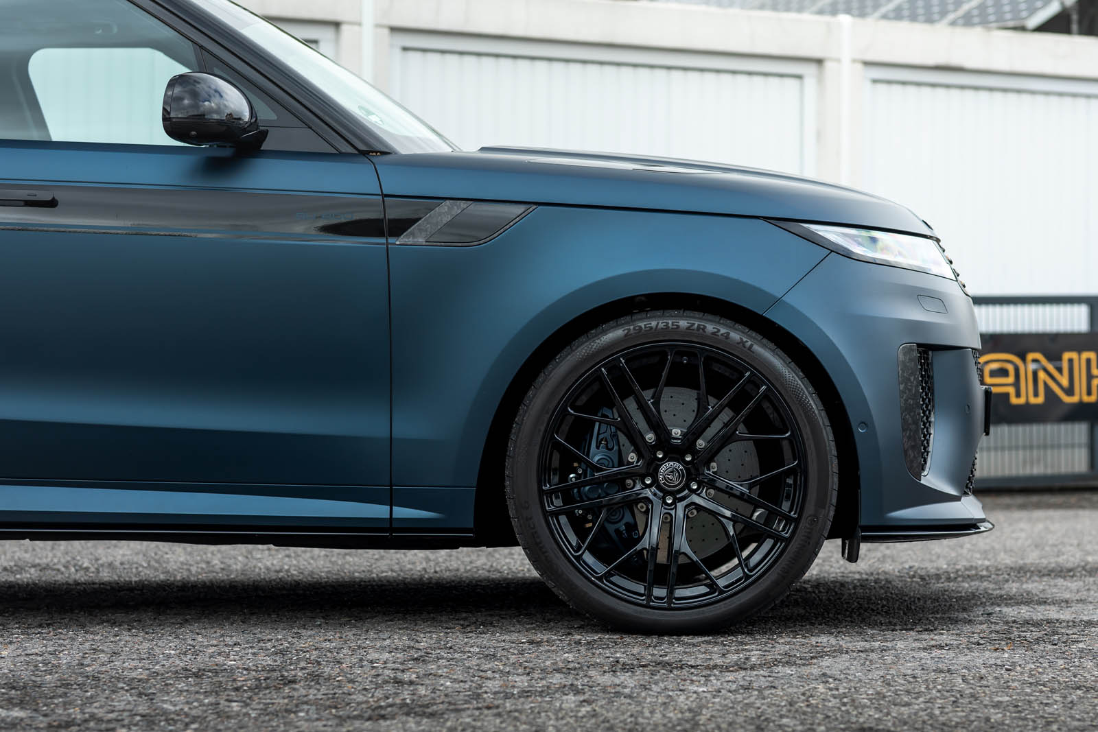 To give the SV 800 a stance that matches its newfound muscle, MANHART fitted a lowering kit with new coupling rods. This setup gives the SUV a lower, more aggressive presence and allows the massive 10×24-inch MANHART Concave One forged wheels to tuck neatly under the arches. The double Y-spoke wheels wear 295/35 tyres and come finished in gloss black, though other colours are available on request. The exterior also gains a signature MANHART touch: a black decal set that accentuates the body lines already highlighted by the Range Rover’s forged carbon fibre details.