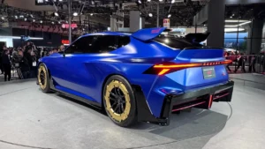 This concept is expected to lead Subaru’s next wave of performance cars. It’s a fitting tribute to Subaru’s rally legacy, arriving in the same year that marks 30 years since Colin McRae’s legendary WRC title in the Impreza. Like that car, the Performance-E STI features the dark blue paint, gold wheels, and vivid pink STI logos that became icons of the brand.