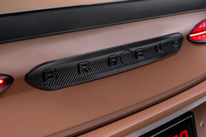 The changes extend beyond straight-line numbers. BRABUS fits a stainless-steel exhaust with active valve control, giving the driver the choice between a quieter mode for town use or a more pronounced V8 soundtrack. The exterior package is built around new carbon components designed to sharpen the look and improve airflow to radiators and brakes. The reshaped front fascia incorporates a carbon lower section with an integrated spoiler and larger intakes, and at the rear the exposed-carbon spoiler and diffuser frame four carbon-sheathed titanium tailpipes. BRABUS badging in exposed carbon finishes off the visual changes.