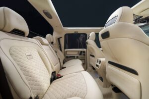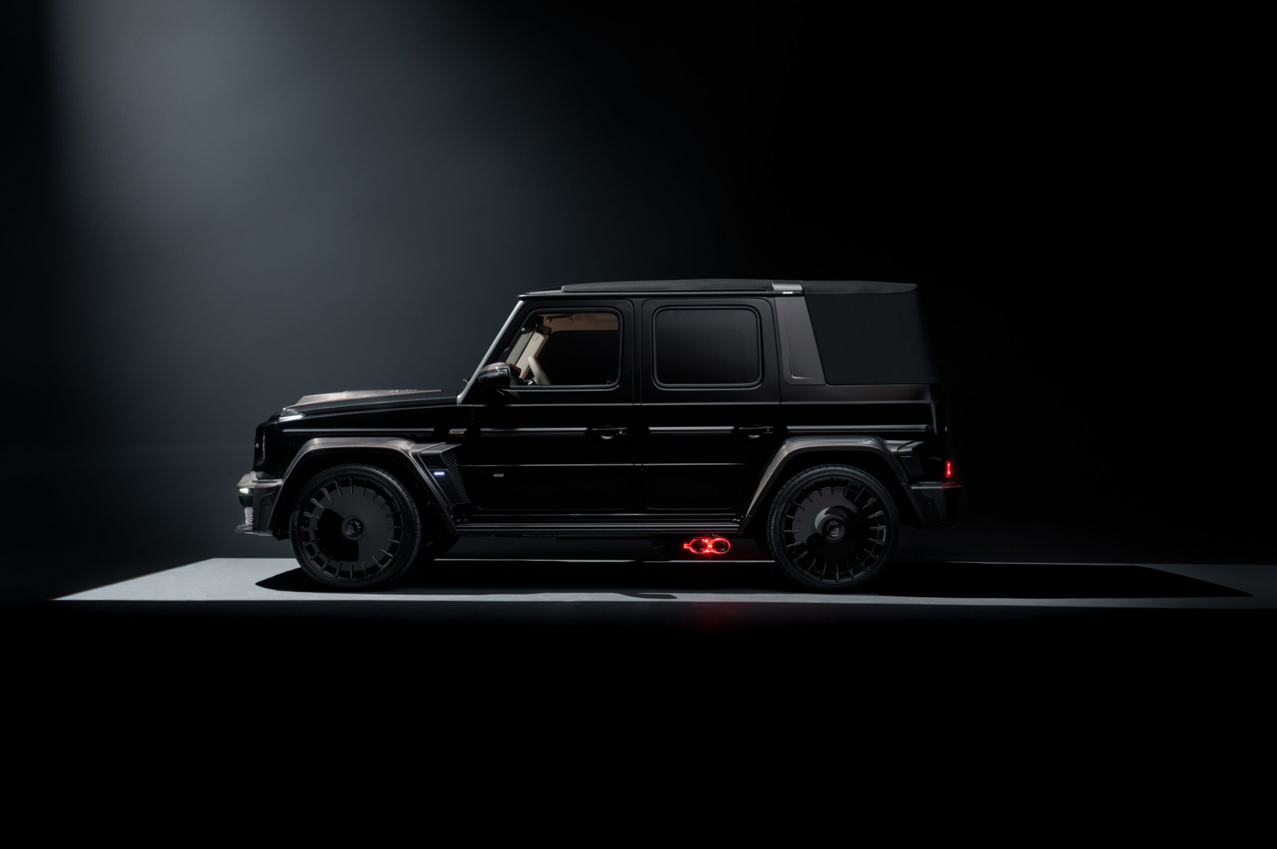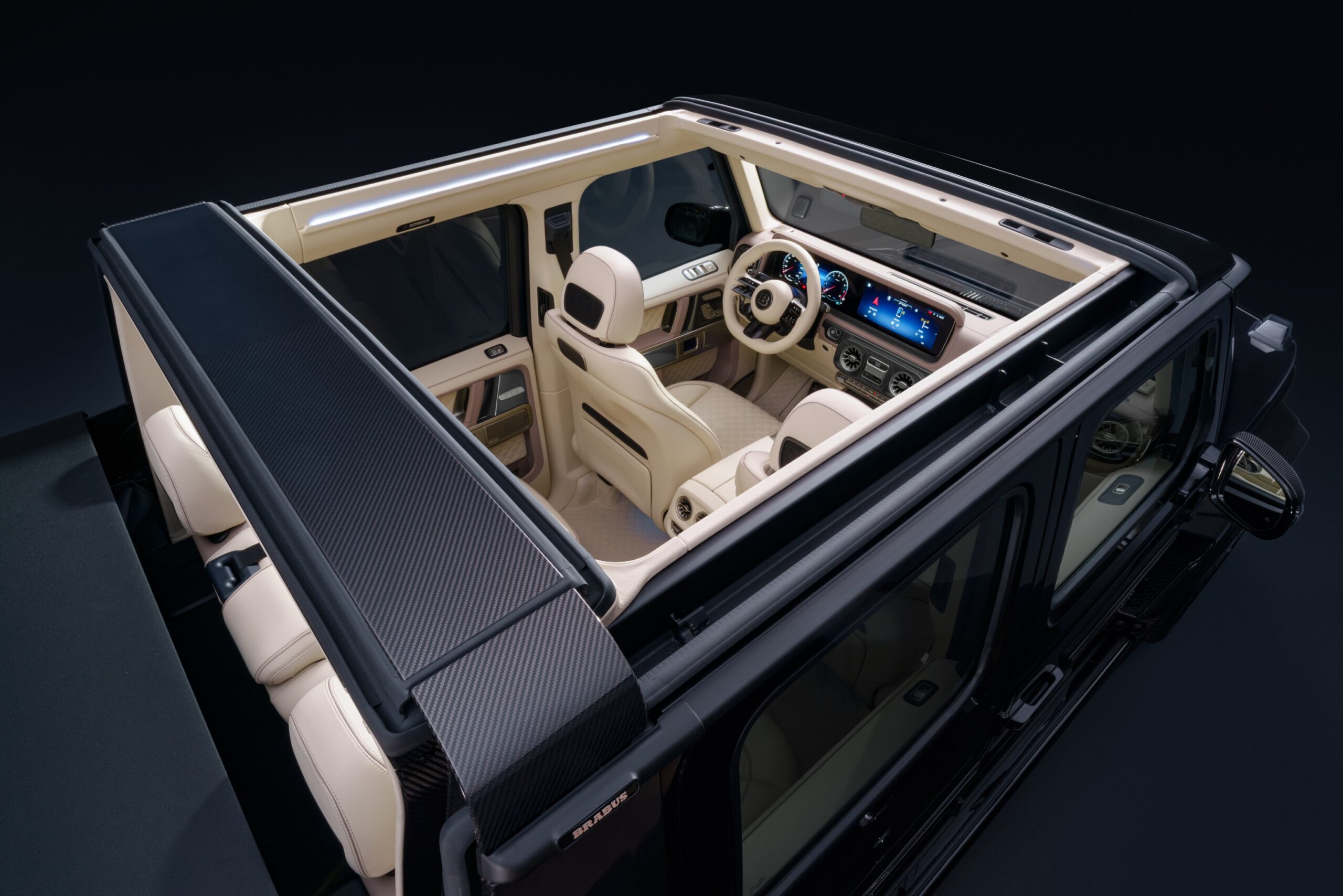 The conversion is a proper engineering exercise, not a gimmick. BRABUS rebuilt the body with high-strength steel, then ran it through a brutal shaker test with peak loads up to 7g. That simulates more than 100,000 km of punishment on and off-road. It also breezed through the mandatory rollover safety test, which tells you everything about how seriously the structure has been reinforced. Even with all this work, the shape stays unmistakably G-Class thanks to a soft-top system built from more than 500 custom parts. It opens or closes in 20 seconds, includes a heated safety glass window, locks into a strengthened windscreen frame, and uses a carbon roof bow to keep its contour stable at speed.