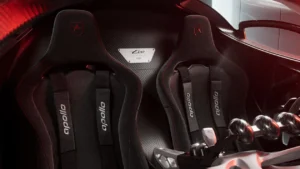Visually, it is exactly what you would expect from Apollo. The design looks like something mid-transformation out of a Transformers film, with winglets, aggressive vents and exposed aero elements everywhere you look. The skeletonised aesthetic carries through to the cabin, where the lucky 10 owners will find an abundance of carbon fibre, motorsport-style switchgear, a yoke steering wheel, fixed bucket seats and full harnesses.