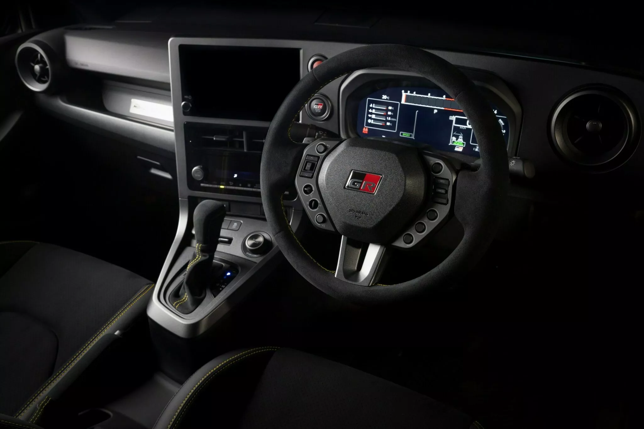 Inside, the changes continue. The Morizo RR features a bespoke steering wheel designed specifically for this model, drawing inspiration from motorsport hardware. It is trimmed in Alcantara with yellow accents and incorporates custom switches for audio and cruise control. A unique digital gauge layout rounds out the cabin upgrades.