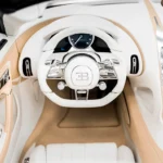 Inside, the theme continues with fearless commitment. The cabin takes the same white-and-gold philosophy to extremes. Exposed carbon fibre elements are finished in white, large areas are trimmed in white leather, and gold leather sections are stitched in matching white thread. It looks immaculate, almost museum-ready. Practicality clearly was not the driving force here. The famous dancing elephant motif, originally sculpted by Rembrandt Bugatti, makes an appearance as well. It might not be to every taste, but that is precisely the point. A Sur Mesure build is about personal expression down to the smallest detail. After two decades of unique Veyrons and Chirons, creating something genuinely different is no small achievement.