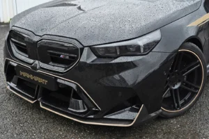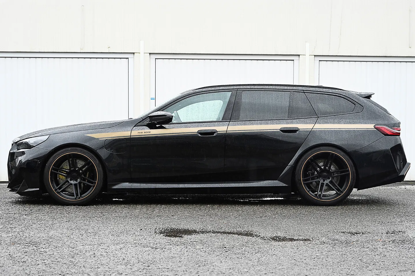 Elsewhere, the changes mirror what’s been done to the saloon. Adjustable KW V4 coilovers handle suspension duties, while oversized 22-inch Manhart Concave One wheels fill the arches. You could argue that a more subtle wheel choice would better complement the upgraded suspension, but restraint isn’t really the goal here. Visually, the package leans on Manhart’s signature gold detailing, leaving the factory’s already aggressive design largely untouched. It works because the base car already brings plenty of presence.