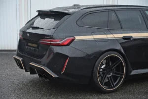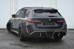 That said, “enough” has never really been part of the brief at Manhart. The German tuner has taken the latest Touring and pushed it much further, badging it the MH5 900E. The name doesn’t quite tell the full story either, because output now climbs to 898 hp (669 kW), achieved through revised turbo hardware and ECU calibration. Torque jumps to a massive 1200 Nm (885 lb-ft), which is a healthy 200 Nm increase over standard. If there were any doubts about the hybrid M5 lacking punch, this setup answers them pretty quickly. For those worried about sound, Manhart fits a stainless steel system with four 115 mm outlets, promising a far more engaging soundtrack.
