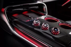 One feature that stands out immediately is the trio of large rotary controllers positioned along the centre tunnel. Even in a fully electric era, AMG clearly believes that drivers should have tactile controls within reach. Each dial connects directly to the car’s driving characteristics. Response Control alters the behaviour of the electric motors and throttle mapping, Agility Control fine-tunes how the chassis responds in corners, and Traction Control offers nine levels of adjustment through the new AMG Race Engineer system. The steering wheel also carries two shortcut buttons with their own small LCD displays, allowing quick access to key performance settings.