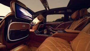 Rear passengers also get their own 13.1-inch displays mounted behind the front seats, complete with integrated HD cameras for video calls. While it may not match the sheer spectacle of BMW’s 31-inch Theatre Screen, it delivers a more integrated and functional setup.