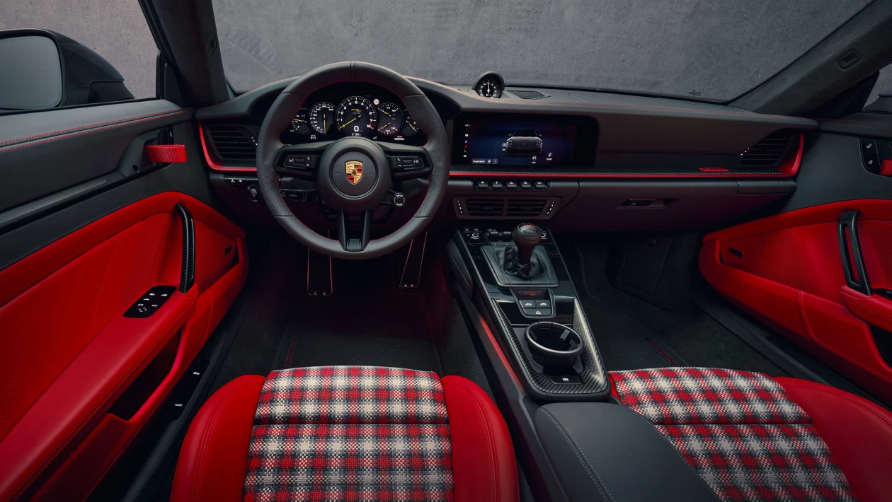 Porsche has also given the S/C its own identity through a few unique touches. A blacked-out windscreen surround and bespoke interior embroidery set it apart, while the cabin sticks to a strict two-seat layout with no rear bench option. For those wanting something a bit more expressive, the optional Street Style Package brings bold colour combinations, tartan trim and even a plywood gear knob into the mix.