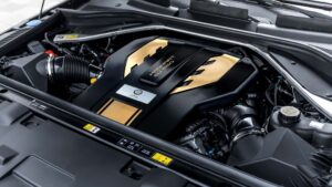 The tuner has also added its typical gold accents to the exterior, including stripes on the hood, sides, and tail. Underneath the hood, the engine cover receives similar touches.