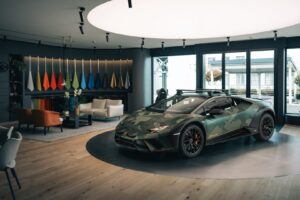 Lamborghini has introduced a limited edition “All Terrain” Ad Personam version of the Huracán Sterrato at the prestigious Milan Design Week in Italy. The 12 cars boast unique liveries created by Lamborghini’s Ad Personam studio and Centro Stile, inspired by the Sterrato’s natural habitat: snow, sand, off-road tracks, and deserts.